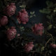 A hauntingly beautiful composition of lush, layered roses and wild foliage against a deep, shadowy background. The petals appear almost luminous, glowing in the dim light, as if suspended in an enchanted twilight. The interplay of delicate florals and untamed greenery adds a sense of mystery and old-world charm, reminiscent of a forgotten garden at dusk.