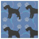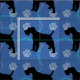 This fun, cute black shadow silhouette style Fox Terrier stands against a blue background with paw prints and tracks of gray, blue and pink. Design by Diane Blackman. The same design is available with other fun dog images.