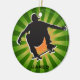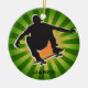 Shadow-outlined skateboarding ornament with customizable text and background color.