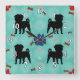 A silhouette Pug with a scattering of bones and paw tracks. This design is intended to tile seamlessly.