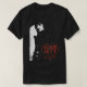 My 11 yo wore adult XL (5’7” 165#). The 8yo is small framed. She wore adult small and tied it in the back. Grandma wore adult large with long sleeve shirt underneath. Tall girl adult medium. Dark haired male adult large. Good quality dark Heather gray, Gildan brand shirt. -it was next up from basic choice and cost about $20 per shirt. Not too thick or thin. Washed and dried well, no major shrinkage. Not see-through. Can wear a bra under it fine. Screen print is just as shown and well done, front and back.