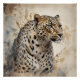 The essence of silent grace. This 20" x 20" glossy poster features Shadow, a leopard with intense, focused eyes and a beautifully rosetted coat, rendered in exquisite watercolor detail. The natural golden and amber tones are masterfully blended into a soft, blurred savanna backdrop, capturing both the powerful stealth and elegant beauty of this iconic predator. A stunning piece of wildlife art.