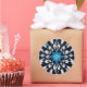 Abstract of a flower with bright sapphire blue central petals surrounded by layers of white petals, each marked with bold, feather-like black shadows.