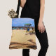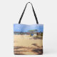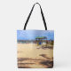If you love the beach, bring it home (without the sand, of course) with the artwork on this Tote Bag. The image was made from an original photograph by ZoeSPEAK, a beach scene with a view of a pier extending out into the ocean. Shadows of palm trees form patterns on the sand.