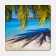 Shadows of a palm tree on the beach of Takapoto, an island in the Tuamotu atoll in French Polynesia.