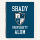 This Shady University Alum used their four years of matriculation to indulge in idle gossip and is practiced in the art of being subtle about disrespecting or criticizing someone. Look at all those multi-syllable words, we Alums really did learn something and like to show off our alma mater school crest with pride on an ocean blue background. Alma mater crest with Shady University school initials shows sunglasses and gossip on the back and is personalized with the name of the proud graduate. Don't forget to choose your paper option: graph, lined, or bullet.