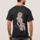 My 11 yo wore adult XL (5’7” 165#). The 8yo is small framed. She wore adult small and tied it in the back. Grandma wore adult large with long sleeve shirt underneath. Tall girl adult medium. Dark haired male adult large. Good quality dark Heather gray, Gildan brand shirt. -it was next up from basic choice and cost about $20 per shirt. Not too thick or thin. Washed and dried well, no major shrinkage. Not see-through. Can wear a bra under it fine. Screen print is just as shown and well done, front and back.