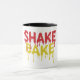 This Mug and Cup is a fun and eye-catching design with the text "Shake and Bake" in a vibrant, multicolored gradient. Each letter is a different color, creating a rainbow effect across the chest. It's perfect for those who love a touch of boldness and whimsy in their wardrobe.