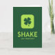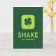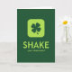 This card features a deep forest-green background with a lime-green rounded square near the top, holding a dark four-leaf clover silhouette that feels like a lucky token passed between friends ☘️. The clover’s soft curves stand out against the neat, app-like shape, creating a modern St. Patrick’s Day look. Centered beneath the icon, the word “SHAKE” appears in large uppercase letters in the same lime green, grabbing attention right away. Just below it, “your shamrocks!” sits in smaller type, also in lime green, as if finishing the line with a friendly nudge 💚. The strong contrast between the dark green field and the bright lettering gives the layout a lively, party-ready energy without feeling busy. With everything aligned down the middle, the design reads like an invitation to step closer, share a grin, and join in together. The lime elements glow against the darker background, from the top icon to the stacked text below.