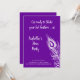 A large peacock feather decorates this Hens Party Invitation on a purple background with the cute saying, Get Ready to Shake your Tail Feathers! making it perfect for a night on the town dancing to celebrate the bride.