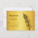 A delicate peacock feather decorates this RSVP on an illustrated gold background. This is the coordinating RSVP for the Shake your Tail Feathers Wedding Collection.