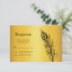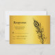 A delicate peacock feather decorates this RSVP on an illustrated gold background. This is the coordinating RSVP for the Shake your Tail Feathers Wedding Collection.