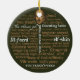 Lightweight, smooth, pure white ornament with nice sheen. Perfect size to be seen from across the room ... and to attract closer inspection! Price was great for ordering enough for the whole family! Clear, bold black design just as requested. Matches the order exactly. Just so nice!