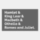 'Hamlet and King Lear and Macbeth and Othello and Romeo and Juliet' Shakespeare plays on a gray background. Victorian literature.