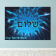 Dark text reading "Shalom" (Hebrew: peace) superimposed on a lighter blue fractal image. Add your own additional text.
