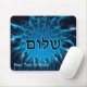 Dark text reading "Shalom" (Hebrew: peace) superimposed on a lighter blue fractal image. Add your own additional text.