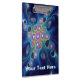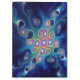 A multicolored (pink, green, blue, yellow), looping fractal image on a dark blue background. An interpretation of how the night sky may appear to a Siberian shaman while in a trance communicating with the spirits.