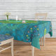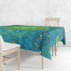 A fusion of Tantric and Lotus mandala techniques representing Earth and air elements. This 52" x 70" cotton tablecloth features vibrant green and turquoise colors symbolizing nature and air, inspiring awareness of climate change. Made in the USA, this tablecloth adds elegance and a touch of environmental consciousness to your dining decor.