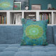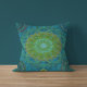 Enhance your home decor with the Shambala Tantric Nymphaea mandala art throw pillow. This unique piece combines Tantric and Lotus mandala techniques with modern geometric design, featuring green and turquoise colors that symbolize Earth and air. Made from high-quality, wrinkle-free Simplex knit fabric, it's both soft and machine washable. Perfect for adding artistry and environmental mindfulness to your space.