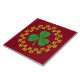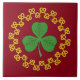 According to tradition, Saint Patrick used the three-leaf clover to illustrate the Christian Trinity. Although the authenticity of this tradition is in question, the shamrock has become a symbol of Ireland. This design combines the green shamrock with a circle of Celtic-style knotwork in yellow, both on a red background.