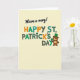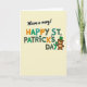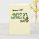 Designed with a soft, creamy yellow background, this St. Patrick’s Day card centers on a cheerful message that feels like a friendly wave across the room 💚. Near the upper middle, the line “Have a very!” appears in flowing black lettering, setting up the bigger greeting below it. Under that, “HAPPY ST. PATRICK’S DAY” stretches across the center in all caps, with letters alternating between earthy green and warm orange for a lively rhythm. Tucked into the lower right, a smiling brown bear in an emerald leprechaun hat leans in as if joining the celebration with you. The bear holds a bright green shamrock close, like a small gift offered with an easy, affectionate grin ☘️. Tiny shamrock shapes are also worked into the lettering, replacing a small mark and adding little green accents that tie the whole layout together. The overall look uses rounded shapes and gentle lines, and the bear, hat, and shamrock sit clearly against the creamy yellow backdrop.