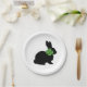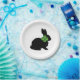 Black silhouette of a bunny with a shamrock bow for St. Patrick's Day.