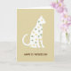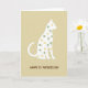 This card features a sleek white cat in side profile, sitting calmly against a warm, muted beige background that feels like soft afternoon light. Inside the cat’s silhouette, small shamrocks and four-leaf clovers are scattered like confetti, mixing gentle moss green and pale buttery yellow for a lucky St. Patrick’s Day touch ☘️. The neat little clovers tucked along the cat’s back and belly add a sweet, friendly charm, like a quiet nod shared between close friends. A faint shadow around the cat gives it a cut-paper look, making the white shape stand out without feeling harsh. Beneath the illustration, the text “HAPPY ST. PATRICK’S DAY” sits centered near the bottom in rounded brown lettering that matches the warm background. The simple layout leaves plenty of open space, keeping the focus on the cat and its clover-filled outline 💚. The final look is a white cat silhouette filled with green-and-yellow clovers above centered brown text on a beige field.