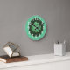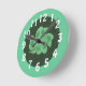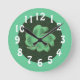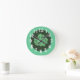 Shamrock or clover (shaded) in center of clock, with textured dark green center background, and green outer background. With white numbers. Outer background and numbers are subject to color change by you.