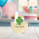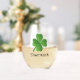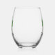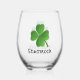 Shamrock Clover Design Stemless Wine Glass with customizable text.
