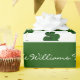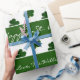 Happy St. Patrick, With Love from The Williams Family or your text, Shamrock, Three Leaf Clovers Pattern, Elegant Green White Gift Wrapping Paper for St. Patrick or your Irish Occasion