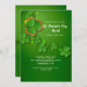 A radiant green background features a cascading flurry of shamrocks, one of which is lined in gold. Perfect for any St. Patrick's Day celebration.
