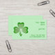 Modern design with a "shining", "sparkling" green and white shamrock on a pale green background and green text. Business card template with a customizable design for you to personalise with your own text, images and ideas. Please note that this is an image created using original photographs and digital techniques, it does not shine or contain real sparkles.