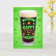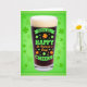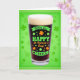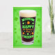 This card shows a pint glass centered on the front, filled with a deep stout-brown drink and topped with a thick, creamy white foam cap. Behind it sits a bright lime-green background that feels like a lively party backdrop, with faint shamrocks drifting across a soft grid and a stronger green border framing the scene. The glass becomes a friendly stand-in for two people clinking drinks, with the frothy top leaning like a gentle touch against the dark pour, as if sharing a close laugh 💚. Printed right across the drink is the message “Wishing you a HAPPY St. Patrick’s Day! CHEERS!” in neon-emerald green, so the words look like they’re glowing from inside the glass. Small orange shamrocks and tiny star shapes sit around the lettering, adding little sparks of celebration ☘️. “HAPPY” and “CHEERS!” are larger and more attention-grabbing, while the rest of the line tucks neatly around them to keep the toast easy to read. The pale shamrock pattern stays in the background, while the brighter green frame and the orange accents keep the eye circling back to the pint. The final look shows a dark glass with a creamy white head, neon-green lettering over the drink, orange shamrocks and stars, and a lime-green shamrock-and-grid backdrop inside a brighter green border.