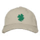 Cool St Patricks Day embroidered hat features a big green shamrock four leaf clover in green, on a khaki (or other color) background. Great for irish pride or the st patricks day holiday.
