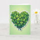 This card shows a lush green heart built from many intertwined three-leaf clovers, filling the center like a shared sign of love and luck 💚. The clovers overlap closely, like friends leaning in for a photo or two sweethearts drawing nearer, creating a tender, gathered-together look. Soft light falls across the leaves, keeping shadows gentle and letting the brighter greens glow along the raised edges. The greens shift from deep emerald in the tucked-away areas to lighter lime on the surfaces that catch the light, giving the heart a layered, leafy depth ☘️. Each clover is outlined in a slightly darker green so the shapes stay clear even where they cluster tightly. A thin white border wraps the whole heart, and a faint drop shadow helps it stand out from the pale green background. Small St. Patrick’s Day text sits near the top in medium green, with a shorter line near the bottom in a lighter green. The background fades softly from one pale green tone to another, framing the clover heart like a sticker set on a gentle wash.