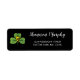 A return address label with a green shamrock and a gold Irish harp and your name in a modern calligraphy script.