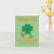 Adorable Custom Saint Patrick's Day Card Featuring A Walking Shamrock On The Cover And Keep Those Irish Eyes Smilin' Greeting. Inside Greeting "Happy Saint Patrick's Day To Ye". May be Customized For That Personal Touch.