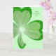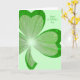 A modern design featuring a large shining, sparkling shamrock on a green background and the words 'Happy St. patrick's day' written in green. Greetings card with a customizable design for you to personalise with your own background colour, text, pictures and ideas. Created using original photographs and digital techniques by Jess Perry.