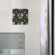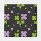 Original seamless floral pattern, lucky green and purple shamrocks on black background.