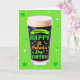 This greeting card centers on a tall pint glass of dark stout, topped with a thick off‑white foam cap that curls in soft waves, like a cozy toast shared between close friends 💚. The glass stands upright against a lime‑green textured background sprinkled with shamrocks, white four‑point stars, and small orange starbursts that feel like confetti drifting through the air ☘️. Inside the dark drink, the message appears as bright lettering, as if it’s floating on the surface and catching the light. “Wishing you a HAPPY St. Patrick’s Day!” sits across the middle in neon green, while “CHEERS!” pops nearby in warm golden‑orange. Tiny shamrocks and little white dots decorate the words, adding a flirty sparkle that echoes the background pattern. The rim of the glass is sharply outlined, and the foam looks airy and thick, inviting you to lean in as if sharing the first sip together. All around the glass, scattered green clovers and crisp white star shapes stand out against the lime field, with a few orange bursts tucked between them.