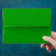 Green envelope for St Patrick's Day with a shamrock patterned liner.