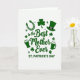 This card features a St. Patrick’s Day-themed layout in a single rich green on a bright white background, with the message “to the Best Mother Ever” centered as the main focus 💚. The words sit in the middle in a flowing style, with “Best Mother Ever” larger than the rest, giving it the feel of a warm hug on paper. At the top center, a shamrock sits like a lucky charm, with a horseshoe to the upper left and a leprechaun hat to the upper right, showing a dark band and a small buckle ☘️. Two green beer mugs with foamy tops appear below the message, one on each side, as if raised in a friendly toast. Small shamrocks and tiny starburst marks are sprinkled around the page, adding extra motion and sparkle without crowding the design. The balanced spacing and matching green artwork make everything feel coordinated, like a cheerful little scene arranged just for someone you care about. The final look is a centered stack of green text framed by the shamrock, horseshoe, hat, twin mugs, and scattered mini shamrocks on the white field.