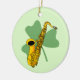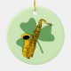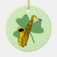 A sax against an image of a shamrock is a unique gift design for Irish woodwind musicians on St. Patrick's Day.