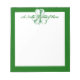 5.5” x 6” white customizable notepad with a green border and an image of a sketched green and white shamrock. See matching notebook. See the entire St. Patrick’s Day Notepad collection under the OFFICE category in the HOLIDAYS section.