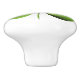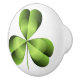 This ceramic know is embellished with a graphic design featuring a bright green three leaf clover or shamrock.