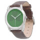 I was uncertain about the size being too small but it looks good. The case looks like aluminum (not shiny) and the time is easy to see. I changed the band because the leather doesn't go with my lifestyle.a. Exactly what I expected, nice yellow. It grabs peoples attention.