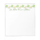 5.5” x 6” white customizable notepad with an image of a band of pretty green shamrocks and gold coins. See the entire St. Patrick’s Day Notepad collection under the OFFICE category in the HOLIDAYS section.