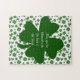 Give friends and family a unique St. Patrick’s Day greeting with this 11” x 14” jigsaw puzzle with an image of shamrocks and top hats on white, a dark green four-leaf clover, and an optional Irish blessing. See the entire St. Patrick’s Day Puzzle collection under the HOME category in the HOLIDAYS section.