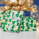 This gift wrapping paper features a fun and festive St. Patrick's Day pattern. The leprechaun's hat, green shamrocks and gold coins appear on a white background.