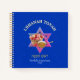 Stylish personalized Israeli blue ROSH HASHANAH Jewish New Year Journal, showing a Star of David with a bowl of apples and a dish of honey. Above is the greeting L'SHANAH TOVAH, written in white and faux gold typography, followed by ROSH HASHANAH in Hebrew text at the bottom. Underneath that is a placeholder name and year. In the background is a subtle tiled pattern saying Rosh Hashanah. ALL TEXT (excluding background text) IS CUSTOMIZABLE, so you can create your own preferred text and spellings (eg. Shana Tova), and add your name and year, with the easy-to-use templates. Choose from a wide selection of stylish, customizable Jewish celebration cards and gifts designed by Berean Designs. Matching planner, notebook and other gifts available.